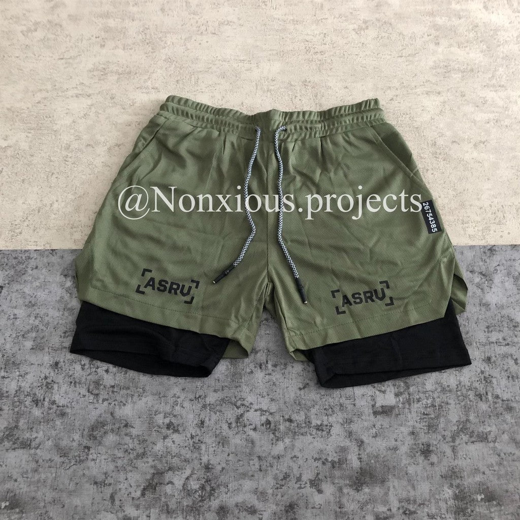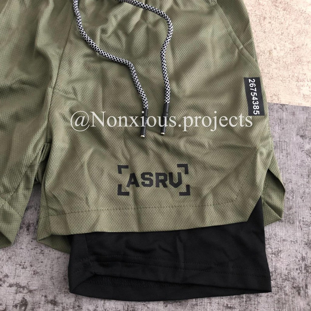 ASRV 5 Inc Shorts Olive-Black/Celana GYM ASRV